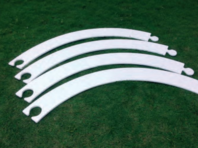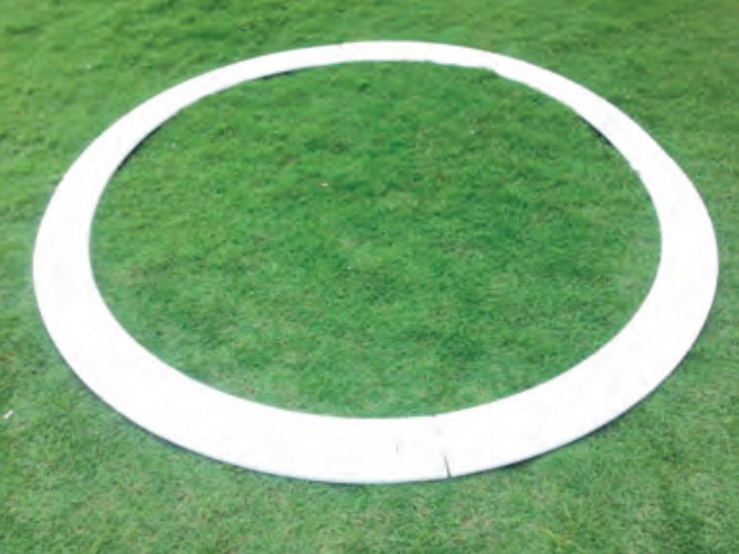 The hammer inlay ring is made from fiberglass. The inlay ring reduces the diameter of the ring from the discus event for the hammer event. The ring consists of four elements.