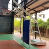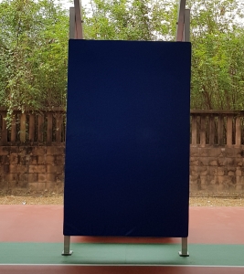 The basketball padding is made from a foam core and a PVC cover on an aluminium structure. The aluminium structure can be hooked on the mobile basketball post. The padding measures a height of 2.0 m and a width of 1.2 m. It has thickness of 50 mm.