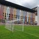 Basketball & Netball Combination Post made of aluminium profiles with a standard 0.90 m overhang. The basketball/ netball stand has an impressive visual appearance due to its delicate construction but despite that is exceptionally stable and resilient.