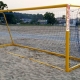 Beach Soccer Goal free hanging net. Portable (5.5 m) The portable beach soccer goal post is made of high-grade aluminium profiles. The inside dimension of this goal are 5.5×2.2 m. The front frame of the goal is made from oval 120x100x2.5 mm profile. The bottom frame is made from a rectangular hollow 80x60x3 mm. The top projection of the goal is 0.8 m. The lower projection can be chosen between three options (1.0