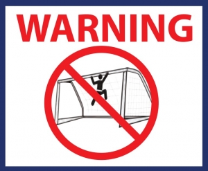 Caution: danger of falling over! According to the regulations of local accident prevention federations and DIN/EN, movable goals must be secured against falling over. For example, with a junior goal with a 1.5 m base depth, a 125kg counterweight is necessary to ensure a stability of 1100 N in accordance with DIN/EN.