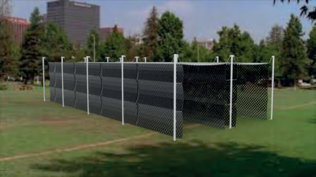 The cricket cage is made from aluminium. The post dimension is 80 x 80 x 3 m with rounded edges. The cage can be installed free stand and in ground sockets. All screws are made from stainless steel.