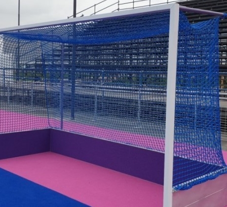 The net is made from high tenacity polypropylene (PP). The net measures a width of 3.66 m and a height of 1.80 m. The projection of the net is 0.90 m on top and 1.20 m on the bottom. The mesh width of the net is 45 mm. The net is available in 3 mm diameter. The net is green in