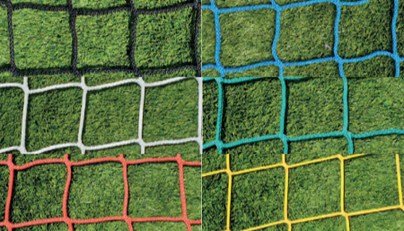 The handball goal net is made from knotless high tenacity PP. It measures 3 m width and 2 m in height. The projection is 80 cm on top and 100 cm at the bottom. The mesh width is 100 mm. The net stands out because of its high mesh rigidity and high energy absorption. It can be fixed easily due to its light weight and flexibility. At the same time the net is also very abrasion resistant. The net fulfils the requirements of DIN EN 749. The net is available in assorted colours and thicknesses.