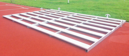 The aluminium bar frame for high jump mats is completely manufactured from aluminium. The aluminium bar frame serves as the perfect base for high jump mats. The aluminium bar frame can help to stop the mat from sagging and at the same time ensure that the mat is sufficiently ventilated from below. The aluminium bar frame is absolutely essential for facilities which have to be assembled and taken apart.