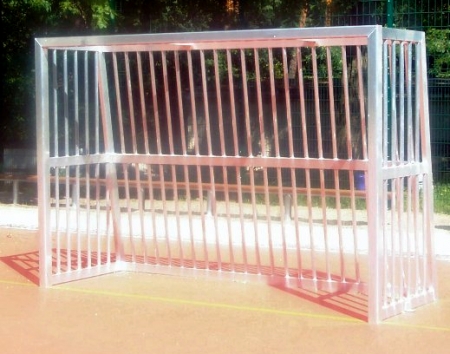 The hobby soccer goal post ‘close back’ is made from high grade aluminium profiles. The goal measures inner dimension of 3×2 m. The cross section of the post is 120x100x2.5 mm. The goal profile is completely made from aluminium and welded in one piece. The back section consist of 38 mm round tubes. The goal post is equipped with an aluminium basketball backboard and basketball ring.