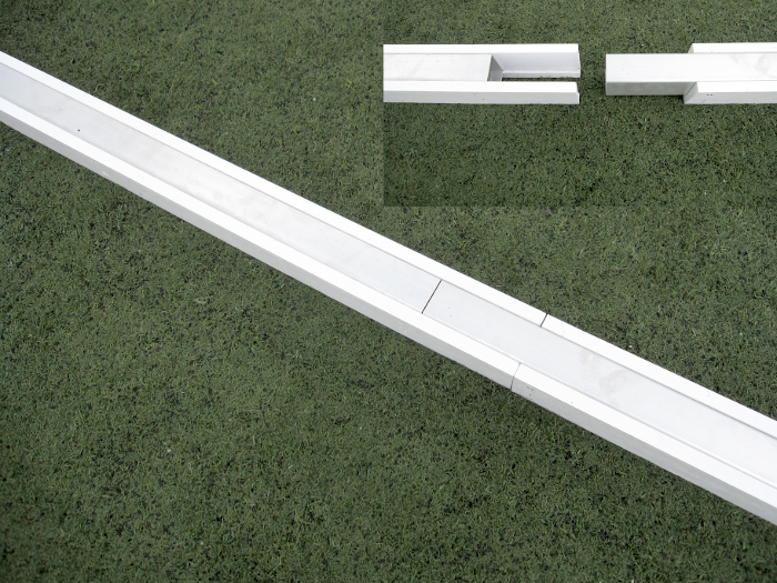 The indoor hockey barrier is made from wood with an aluminium core. The barriers can be locked with each other easily. One set consists of 80 m of barrier.