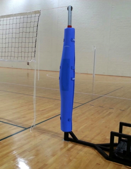 The mobile floor apparatus allows the volleyball post to be completely free standing. The complete set can be removed without fixing it to the floor.