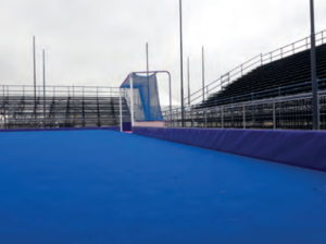 The hockey 5s rebound board competition is made from special aluminium profiles. The boards are equipped with a special foam, which is surrounded by a PVC cover. The rebound boards can be locked with each other easily. They measure a height 25 cm. One set consists of corner pieces and straight pieces. One set is designed to cover a full pitch of 48 x 31.76 m. The front cover is designed in a way to give the required ball return. Therefore, a special foam was chosen to create the ball rebound to keep the game exciting. To enhance the lifetime of this product the foam is covered in weatherproof PVC. The item is designed for competitions of the highest FIH standards.