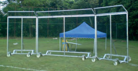 The mobile softball cage is made from aluminium. Dimension 8.00 x 4.00 m. The netting is available in in different colours. The net is made from polypropylene thickness 3 mm, mesh 45 mm. The Cage is easy to be moved and the turning wheels enable to store in any direction.