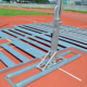 The pole vault uprights are made from high grade aluminium profiles. They are designed for the guide rails. The robust construction guarantees ease of handling and stability. The height of the crossbar can be adjusted from 1.8 to 6.5m. The complete mechanism of the height adjustment is placed inside the posts. The height can be adjusted seamlessly. The uprights can be fixed in position with a brake. The final adjustment of the height can be done on site.