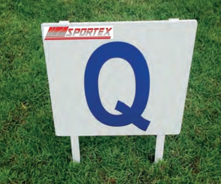 The qualifying marker is made from aluminium. It is designed for the throwing events and indicates, which distance is necessary to qualify. The item is white powder coated.