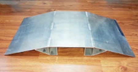 The ramp for vehicle is made from extra strong aluminium. Each ramp measure a width of 500 mm. The ramp is placed on the aluminium curbing to protect it from crossing vehicles. Therefore vehicles can cross the curbing without detaching it.