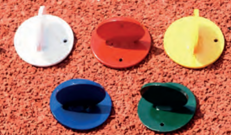 The run up marker is made from stainless steel. It is used to mark the begin of the run up of the athlete. The marker is available in different