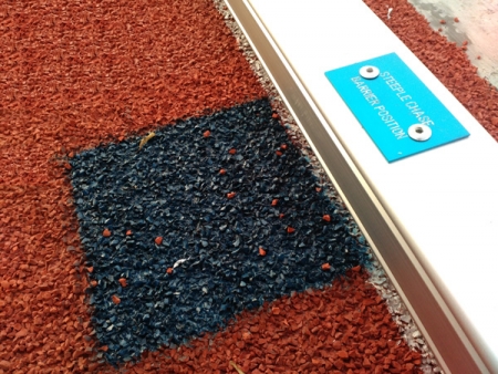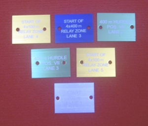 The running track signs are made from aluminium. All signs are coloured anodized. The set consists of all required signs for all