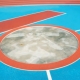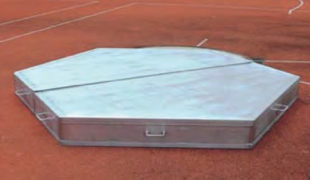 The cover for discus and shot put ring is made from special aluminium profiles. The profiles are joint by tongue and groove. The cover is equipped with handle to move it easily. It covers the shot put ring, or discus ring as well as the shot put stop board.