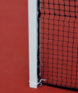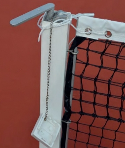 The tennis post square in ground sockets is made from a special aluminium profile. The cross section measures 80×80 mm and a thickness of 3 mm. The tensioning mechanism is located inside the post to ensure highest safety standards. The net can be tightened by a removable crank. The posts are covered with especially casted caps. The uprights are delivered including standard ground sockets. They are available in anodized or powder coated surface.